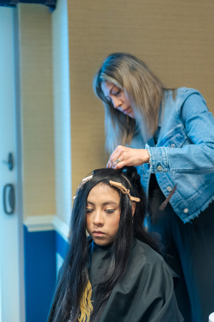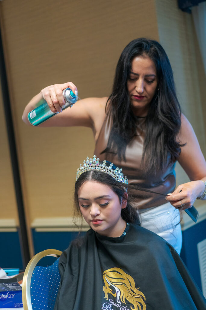 Gran actividad en los camerinos y vestuarios, en imágenes, el trabajo del equipo de Casa Beauty que inició desde el amanecer a preparar a las quinceañeras.