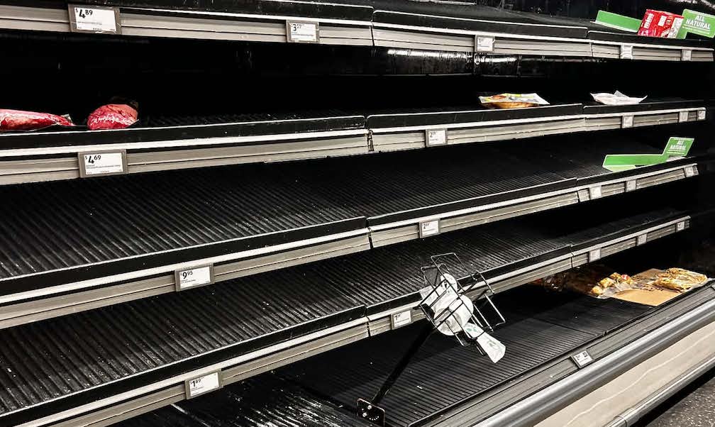 Estanterías vacías desde el jueves 22 de enero en supermercados de Delaware (Foto: M. Alonso)