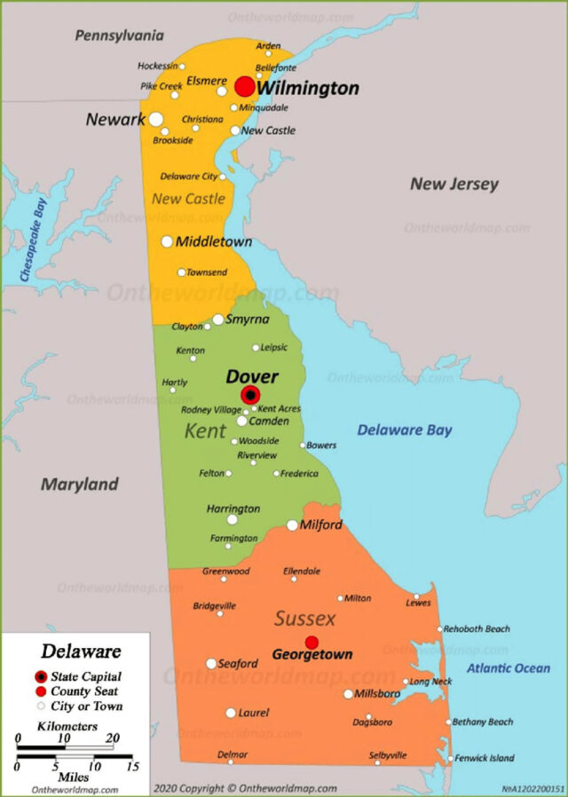 El RD 20 incluye Lewes, Milton, Nassau, Pine Town, Belltown y partes de Harbeson y Georgetown.