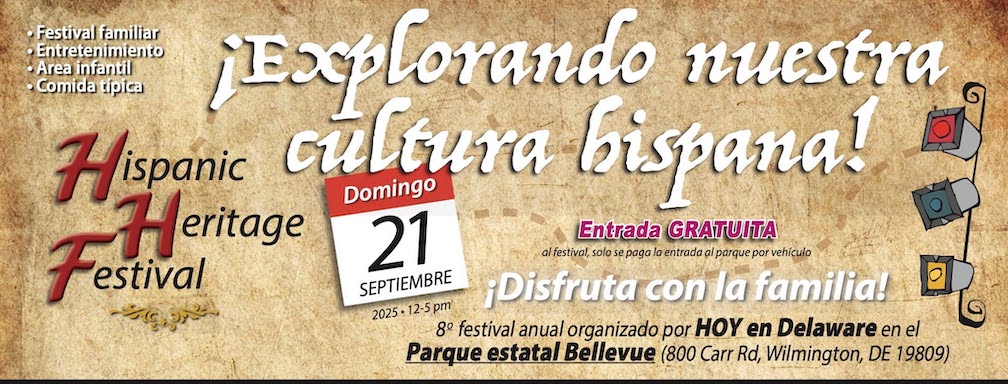Wilmington, DE – Join us for an unforgettable day at the 8th Hispanic Heritage Festival hosted by HOY en Delaware on September 21, 2025, from 12:00pm to 5:00 pm at Bellevue State Park located at 800 Carr Rd. Wilmington, DE 19809).