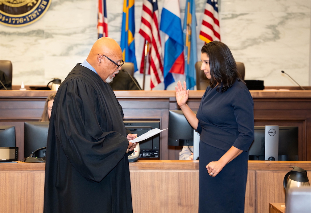 The Honorable Sonia Augusthy was publicly sworn in for her first term as Judge of the Superior Court of Delaware on Thursday, July 31, 2025, at 3:00 p.m. in Courtroom 7E of the Leonard L. Williams Justice Center in Wilmington.