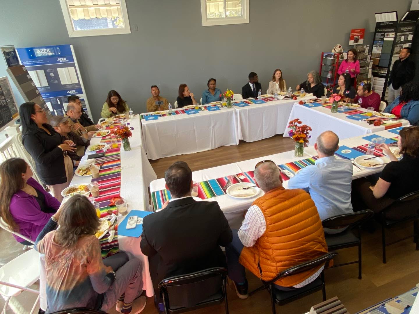 Al final de la jornada, se presentaron contratistas hispanos durante un almuerzo de trabajo en las oficinas de Morales Builders, momento que refleja la foto.